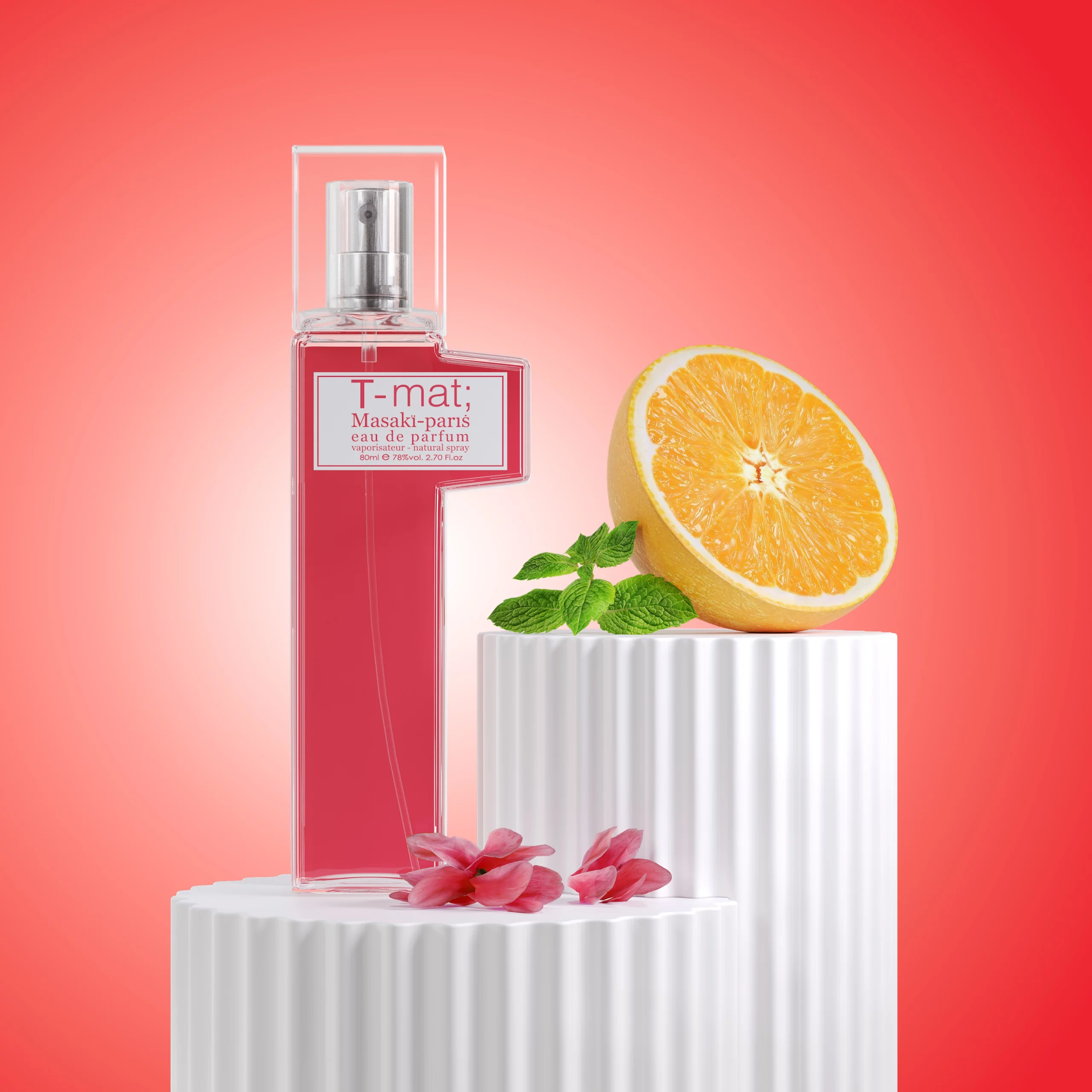 T-mat; is a gourmand floral creation, carefully built around the feminine and dazzling Cyclamen Flower. To begin, the opening notes are bright and uplifting, with the citrusy spark of Lemon and Mandarin. These fresh notes are complemented by the refreshing coolness of Crushed Mint and the sweetness of Juicy Pear. Together, they create an energetic and revitalizing first impression, evoking a sense of lightness and joy.